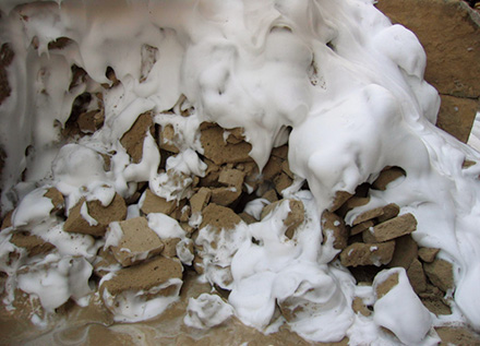 MEA礦用阻化泡沫是由榮獲2001年度煤炭科技十大成果之一的MEA系列煤礦防滅火劑、氮?dú)猓ɑ蚨趸己涂諝猓⑺约癕EA發(fā)泡劑通過專用發(fā)泡裝置發(fā)泡形成的礦用阻化泡沫,是一項綜合了防滅火材料、注氮和泡沫技術(shù)于一身的新型煤礦防滅火技術(shù),它克服了傳統(tǒng)的粉煤灰或黃泥泡沫技術(shù)穩(wěn)泡時間短、泡沫粘附性差、消泡后漿液防滅火效果差等不足之處。